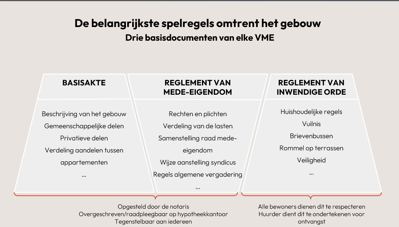 Sinds 2019 zijn er meerdere wijzigingen en aanvullingen op de Belgische wetgeving rond Verenigingen van Mede‑Eigenaars (VME). De hervorming van 2019 was ingrijpend, en sindsdien zijn er bijkomende verfijningen en nieuwe regels, vooral rond energetische renovatie, reservefondsen en de rol van de syndicus .