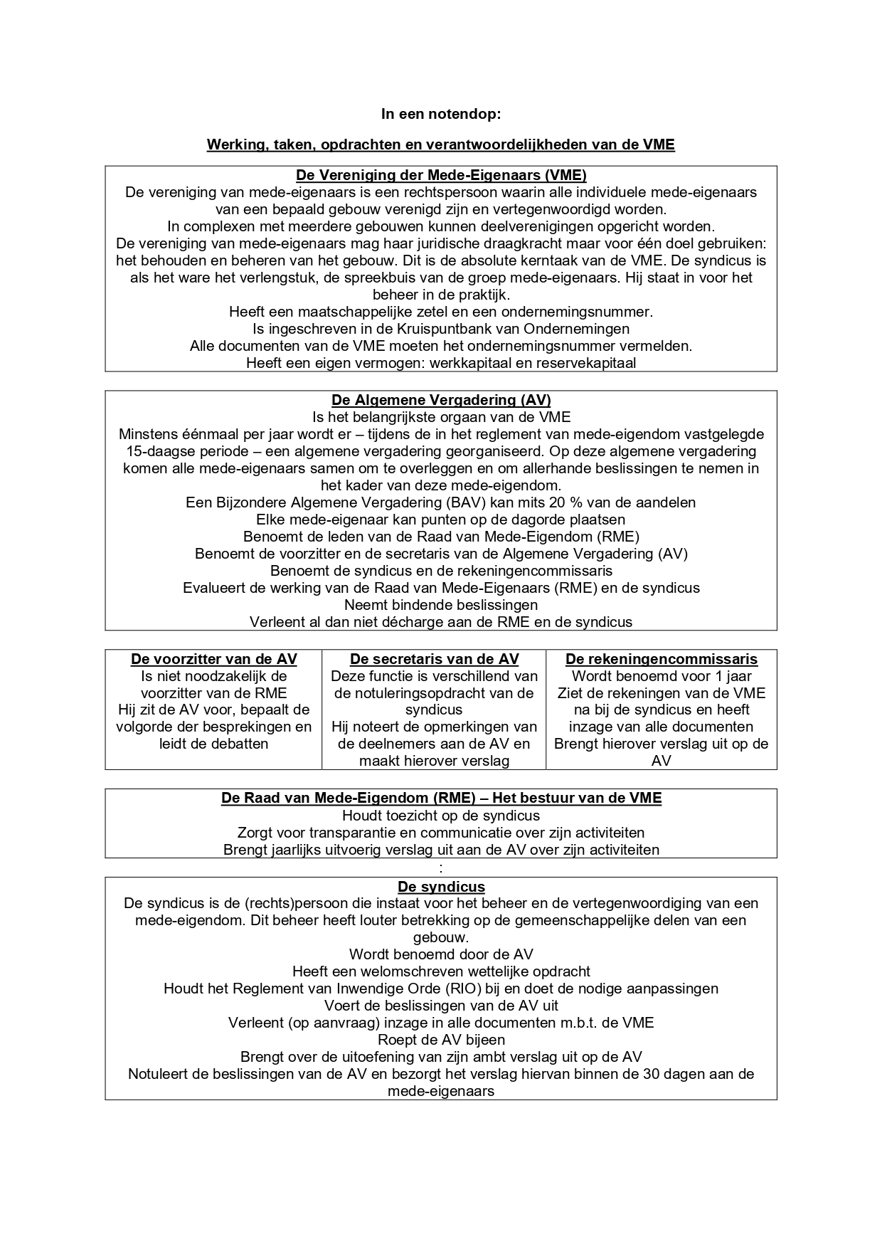 Een raad van mede-eigendom beschikt dan ook niet over een bestuursbevoegdheid noch over een beslissingsbevoegdheid. Haar wettelijke opdracht beperkt zich tot het erop toezien dat de syndicus zijn wettelijke, statutaire en eventuele conventionele taken en opdrachten correct uitvoert.